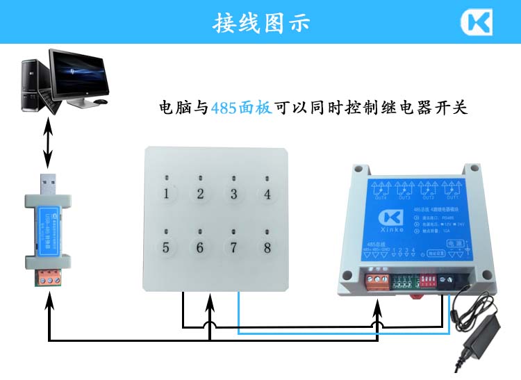 16路繼電器板操作面板 通過485總線操作繼電器板指令面板帶指示燈